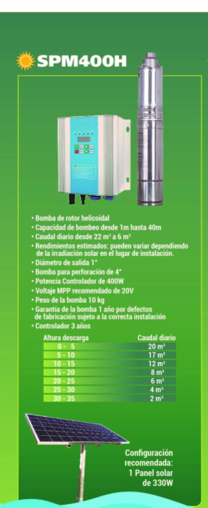 SPM400H Bomba de rotor helicoidal Capacidad de bombeo desde 1m hasta 40m. Caudal diario desde 22m³ a 6m³
